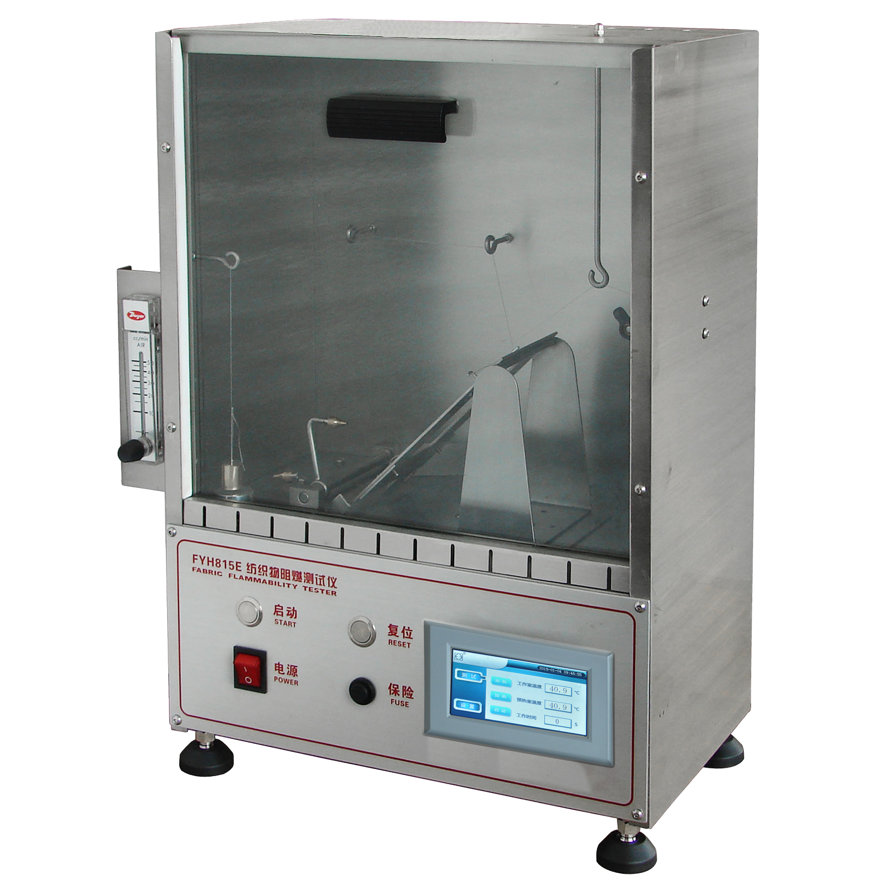 FYH815E型45度燃燒測試儀 | 16CFR 1610 美國服裝面料阻燃標準; ASTM D1230服裝紡織阻燃測試; NFPA 720 CATB 117 CAN/CGSB-4.2NO.27.5 |