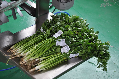 在大型商超售賣的蔬菜,上架前需要進(jìn)行適當(dāng)?shù)陌b。大部分葉菜類以及部分根莖類,如芹菜、韭菜、大蔥、山藥等,一般是進(jìn)行捆扎,貼上條形碼或者二維碼標(biāo)簽供收銀臺(tái)掃描。