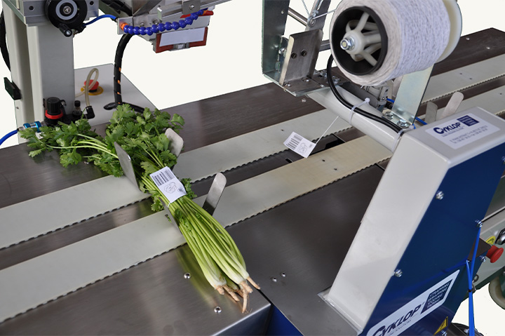 適合于大型商超配送中心、蔬菜種植基地等單位,采用彈力繩扎捆技術,可一次完成切根、掛標、扎捆等,不傷菜、無污染,效率達1800束/小時,能節省大量人工。